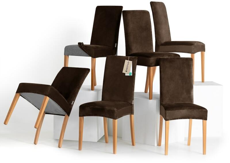 Restilo Husă pentru scaun Sento maro închis, 48 x 48 x 58 + 10 cm, set de 6 bucăți, maro închis